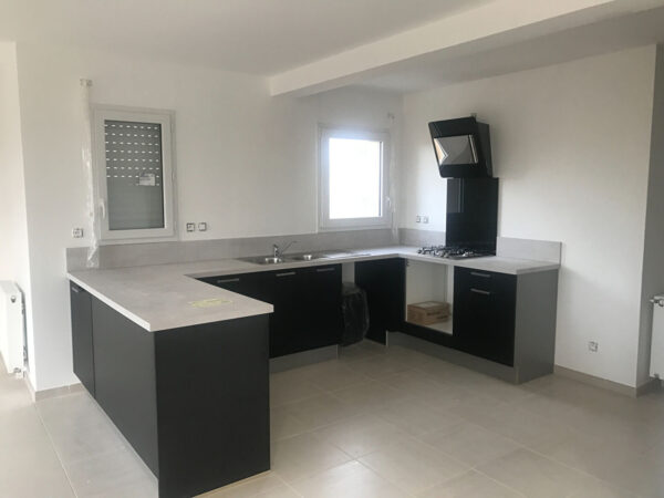 Maison MATHIEU de 4 Pièces comprenant une entrée avec une cuisine aménagée ouverte sur un séjour donnant sur une terrasse , une salle d’eau avec WC , une buanderie .